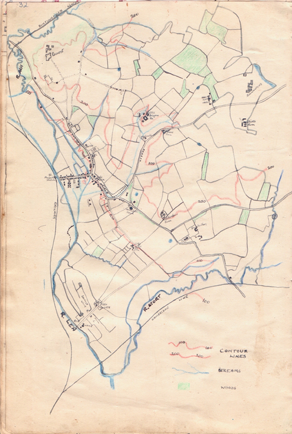 Our boundaries are formed by Rivers, the Ash on the NW, the Lea on the W and the Stort on the south and SE and as the map shows much land is liable to floods. In March 1947 all land below 100ft was under water for three days, food being delivered to South Street and High Street by boat.