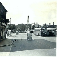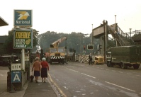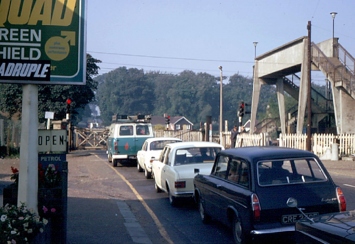 In October 1970 the old level crossing gates at St. Margarets were replaced with "continental barriers". Here are a couple of pictures which I took shortly before the work started and two more whilst work was in progress. I'm sorry the quality is not that good, but they were taken on slides. During the time we lived in the village I must have spent hours waiting for the gates to open. The first two pictures give an indication as to the amount of traffic in those days as well as showing some period vehicles.