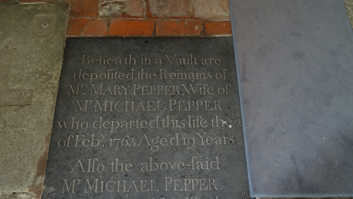 Pepper family memorial in the church floor.
