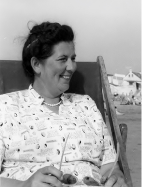 Mrs C A Robertson on the beach during a family holiday in 1957