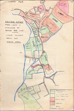 Easneye Estate has always had a dairy farm, but during the war, 60 acres were ploughed in the park, including the cricket pitch. At present roughly 50 acres of corn and 10 acres of roots are grown, but the dairy farm no longer keeps any cows several fields being let to various farmers instead. Six men are employed in farm or garden work.