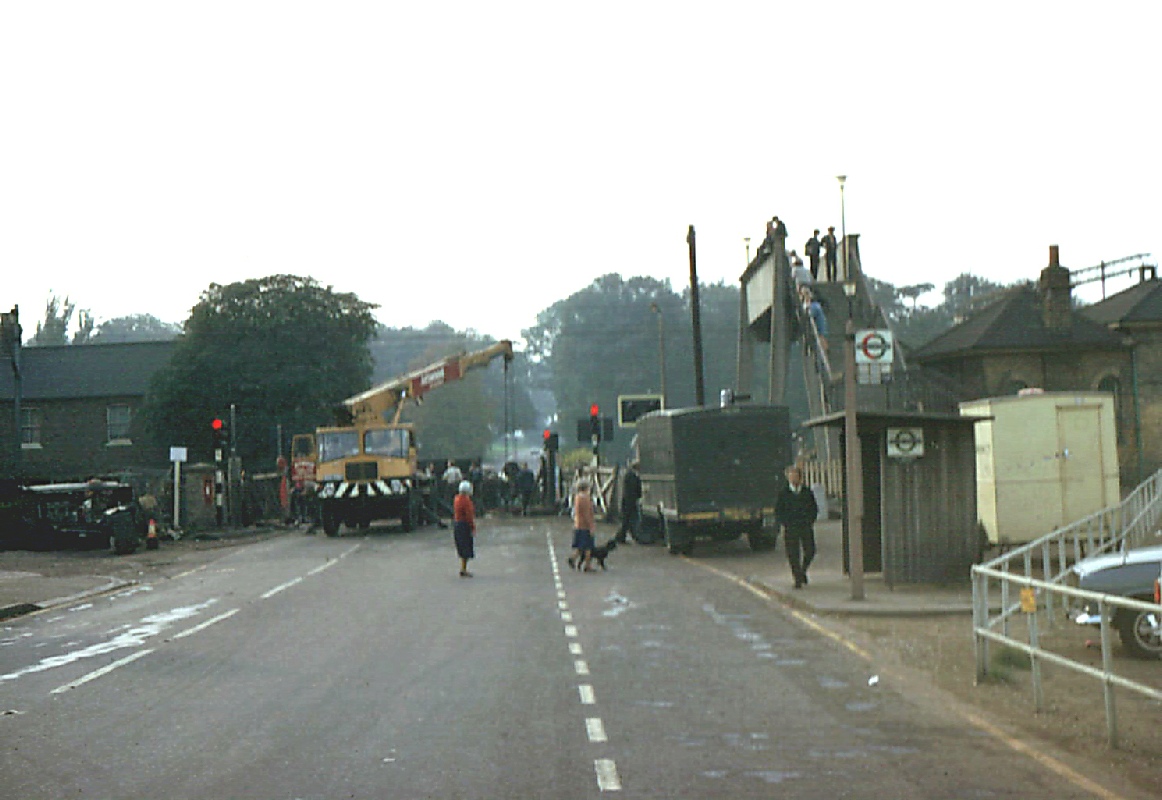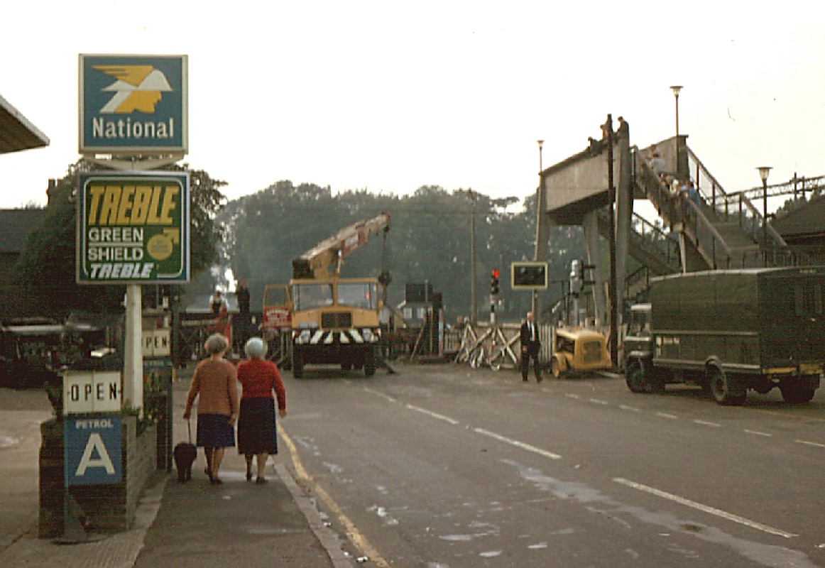 In October 1970 the old level crossing gates at St. Margarets were replaced with "continental barriers". Here are a couple of pictures which I took shortly before the work started and two more whilst work was in progress. I'm sorry the quality is not that good, but they were taken on slides. During the time we lived in the village I must have spent hours waiting for the gates to open. The first two pictures give an indication as to the amount of traffic in those days as well as showing some period vehicles.