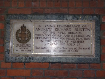 He has a memorial in St Andrews Church and also in the Parish Hall, where above one of the doors you will see an inscription stating that the hall is in his memory. There is a biography of him written in 1918 called “Andrew R Buxton, the Rifle Brigade, a memoir,” and the whole book is available to be read on the internet.