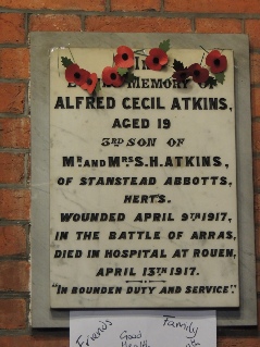 Born on 17th May 1897, in Stanstead Abbotts, he was called Cecil and was the son of Sidney and Alice, they lived in the High Street where Sidney was the local coal merchant, and he also started the chemist shop in the High Street. Cecil had one sister Alice and four brothers, three who also served in the war, Leonard, Arthur and Sidney.