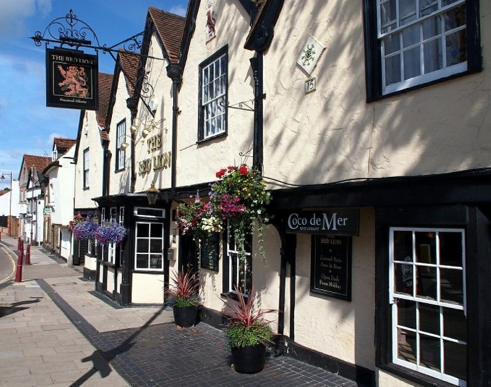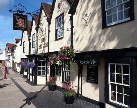 15th century Red Lion Inn at the corner with Cappell Lane is the 16th century boys