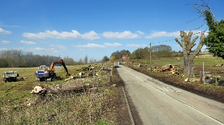 The well known avenue of Horse Chestnut trees in Hollycross Road has gone. Maybe they were a little diseased and dropped conkers all over the road in Autumn but they were a landmark. Yet another loss to the village. There will be nothing left soon.