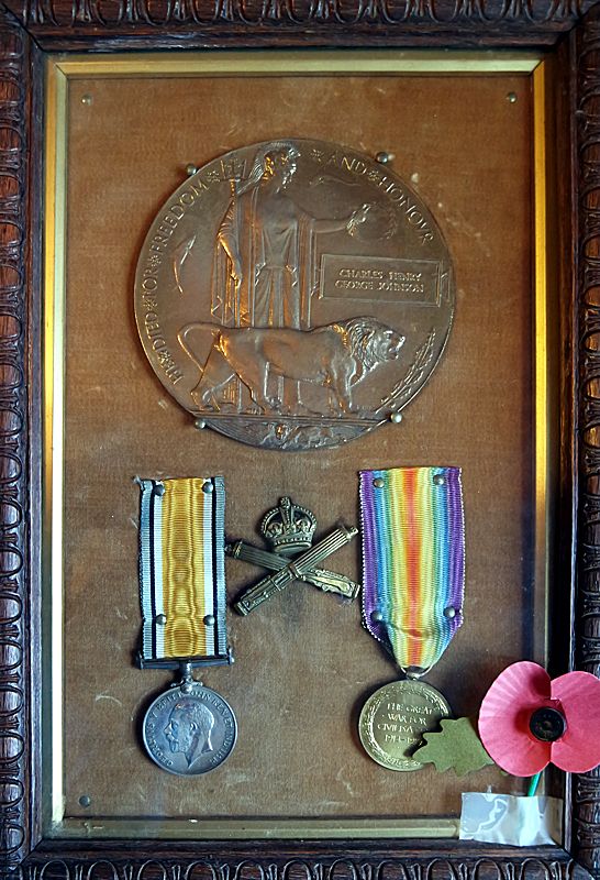 The inscription reads "He died for freedom and honour", but for the plaques issued to commemorate women it was quite rightly changed to "She died for freedom and honour."