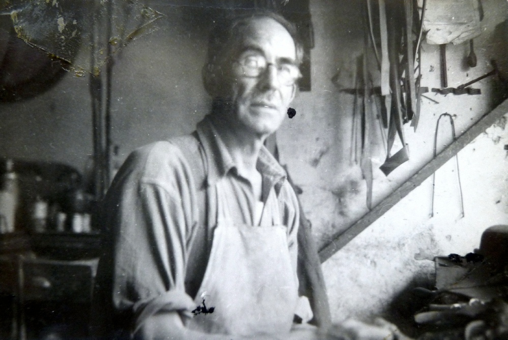 the other shows a weary Frank working in his Saddlers shop at his premises 8 High Street, Stanstead Abbots.