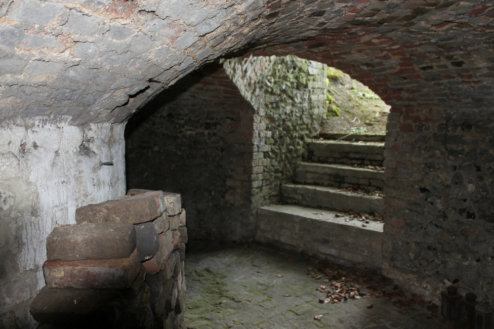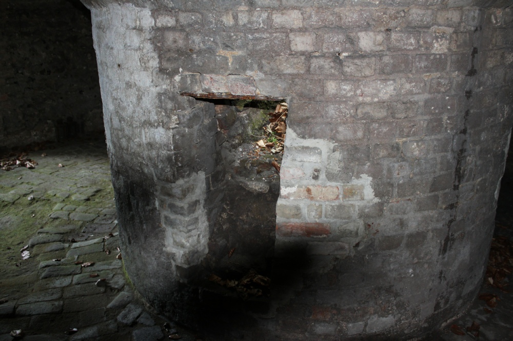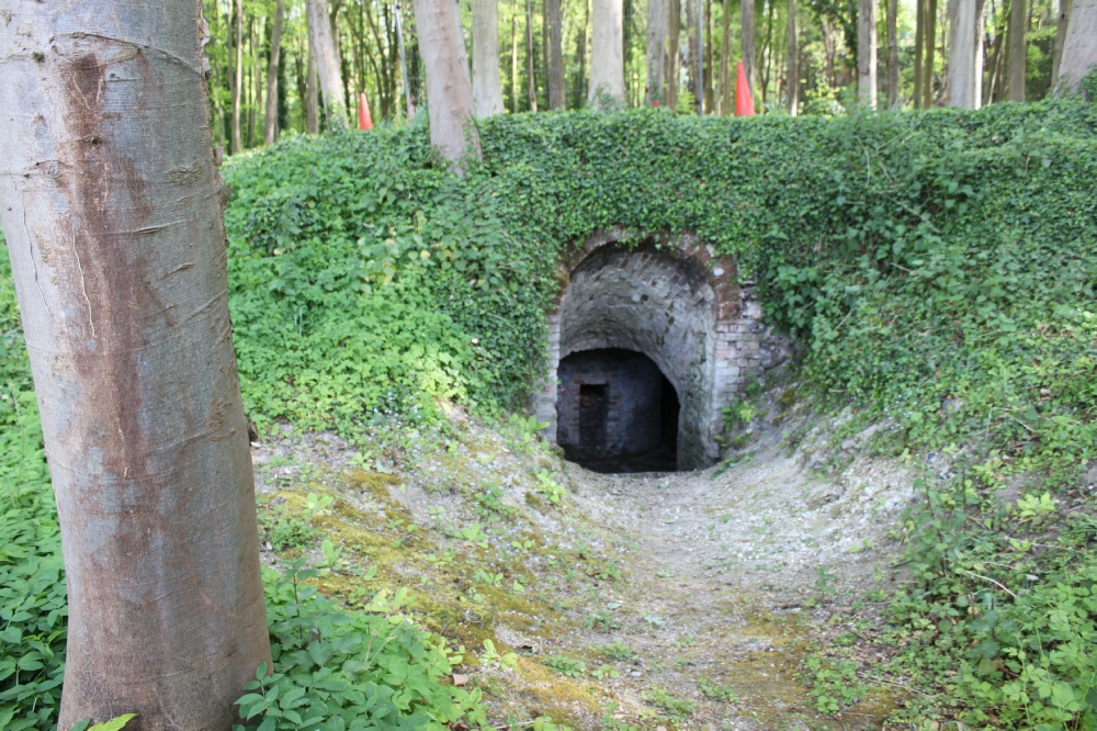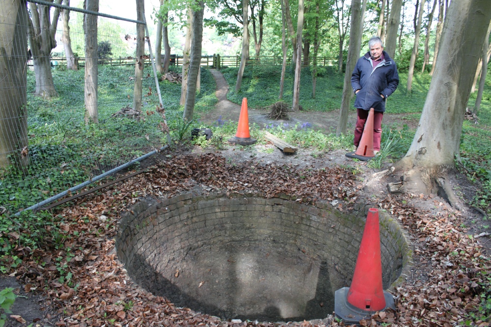 Mrs. Hawkins’ email to us told an interesting tale. Next to her property is the Water Board Pumping Station and an area of woodland. When the Hawkins heard that the Water Board wished to sell a small parcel of woodland, they bought the plot and then noticed a large lump on it, overgrown with greenery and brambles. Mr. Hawkins, who is a builder, cleared the vegetation and discovered beneath it was buried an ancient brick limekiln. This I can describe as tulip shaped, with a wide globular shape at the base and a narrower waisted area above it. It is about 18 to 20 feet from top to base and has three apertures in the base, presumably where the quicklime was extracted.